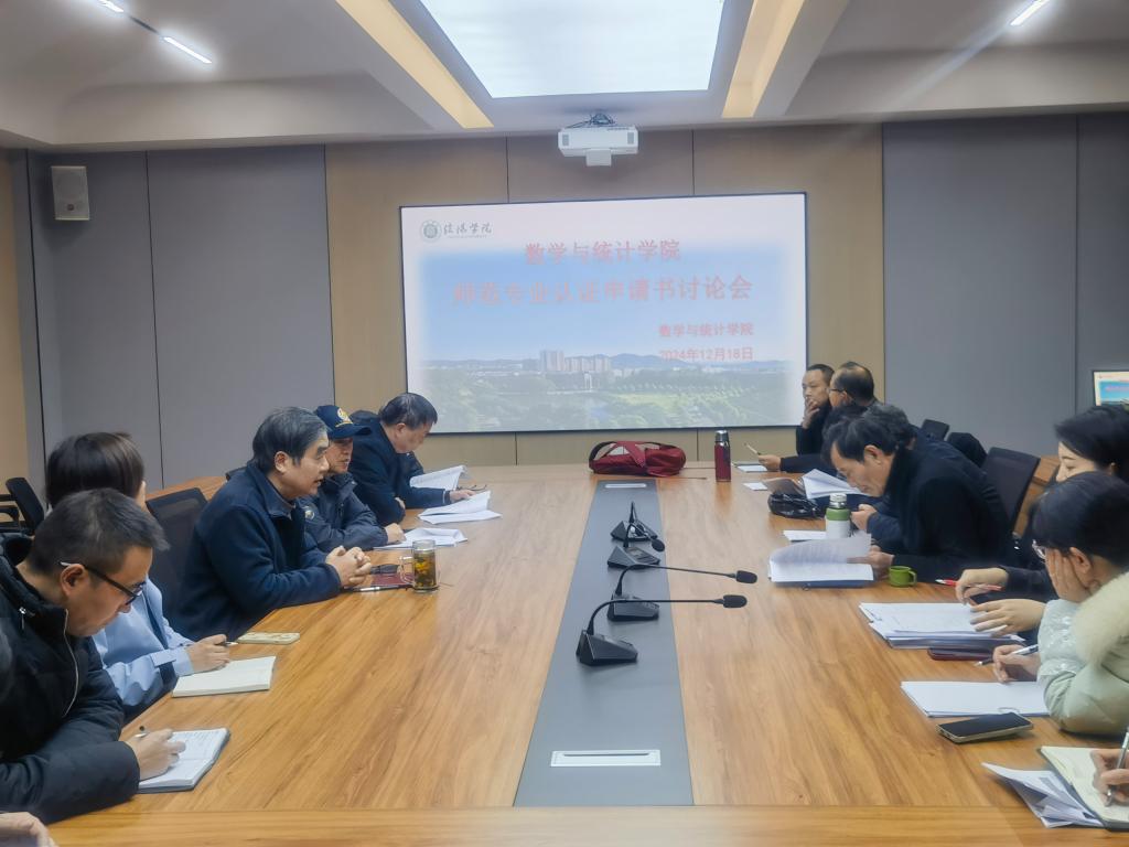 12月18日下午,数学与统计学院在社科楼419会议室召开师范专业认证申请书讨论会。院长俞迎达、党总支书记高昌慧、副院长张聪,全体专家教授和教研室主任参加了本次会议。