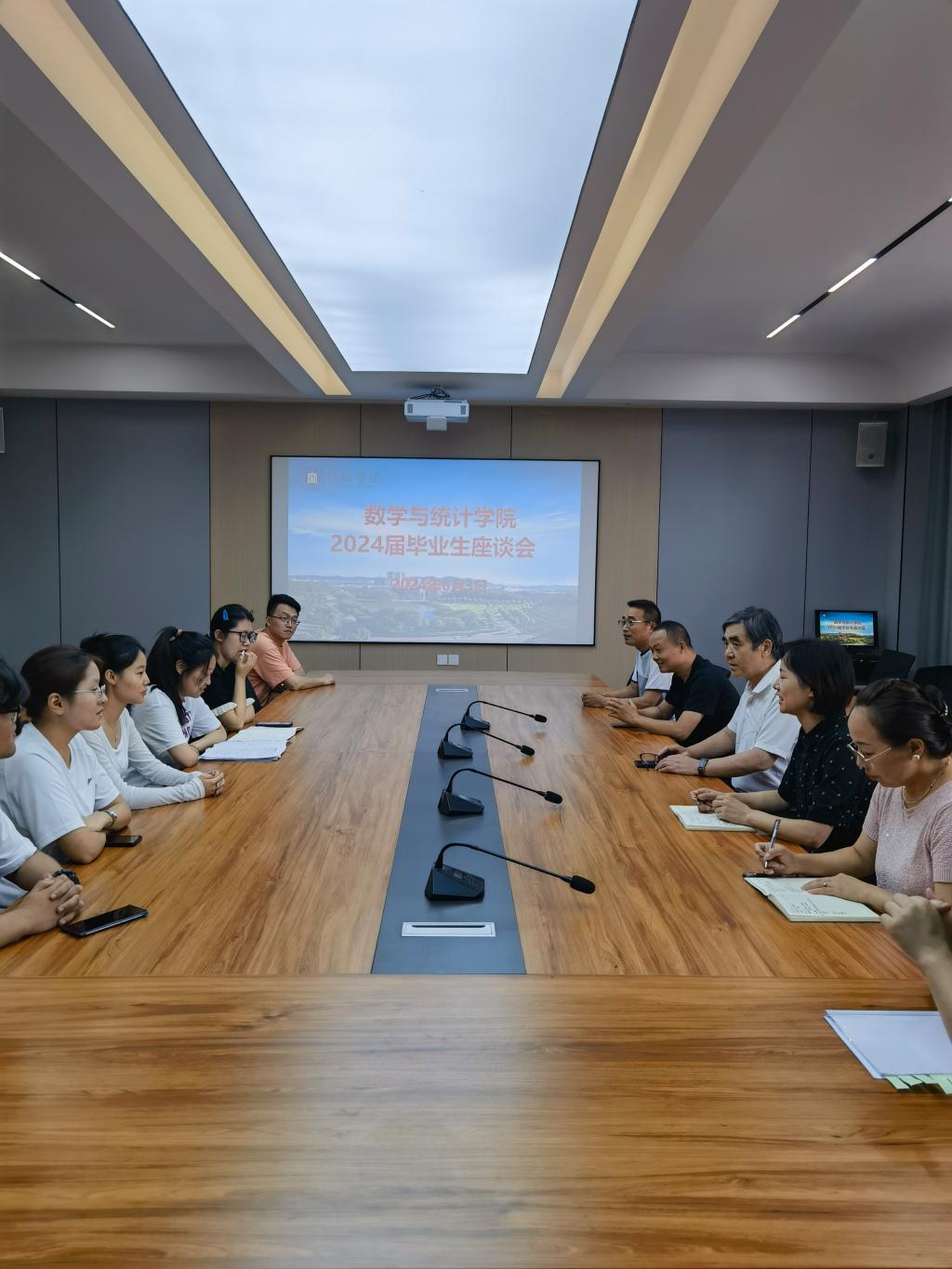 6月3日下午,数学与统计学院在数计楼417会议室召开2024届毕业生座谈会。数学与统计学院院长俞迎达、党总支书记高昌慧、教学副院长张聪、学工秘书田媛、教研室主任及部分优秀毕业生代表参会。