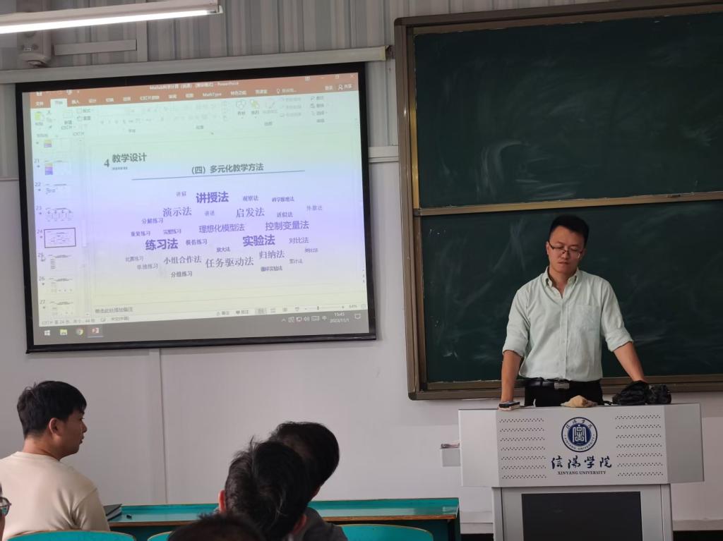 10月22日,数学与统计学院于数计楼209教室成功举办第十五届青年教师课堂教学创新大赛培训会。本次培训会旨在为青年教师搭建备赛指导平台,助力青年教师在课堂教学创新大赛中展现优异水平。学院全体参赛教师参加,并邀请校级青年教师课堂教学创新大赛二等奖获得者徐文彬进行示范。