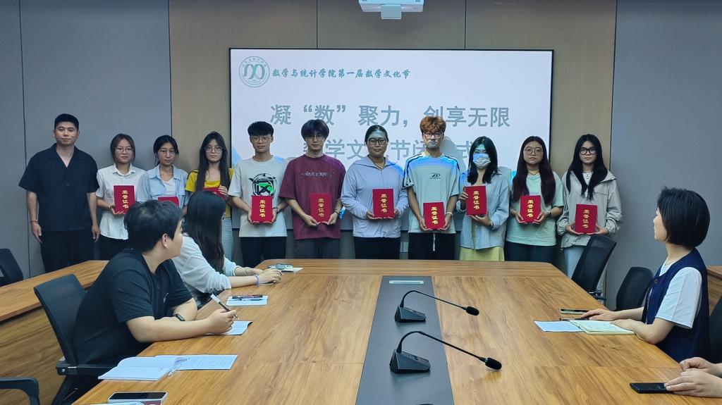 5月20日,数学与统计学院在社科楼419会议室举行第一届“凝数聚力,畅享无限”数学文化节闭幕仪式。院长俞迎达、党总支书记高昌慧、团总支书记胡涛及获奖师生代表参加活动。