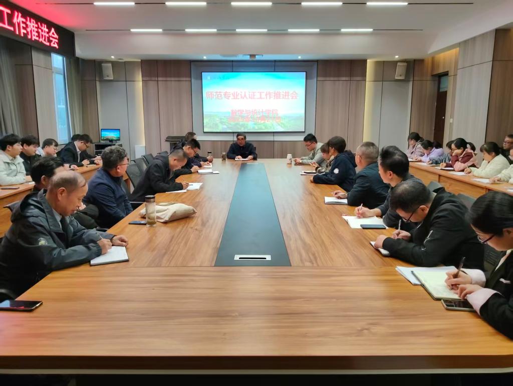 10月21日下午,数学与统计学院在社科楼109会议室召开师范专业认证工作推进会。学院班子成员,无授课任务的全体教师参会,会议由党总支书记郭二军主持。