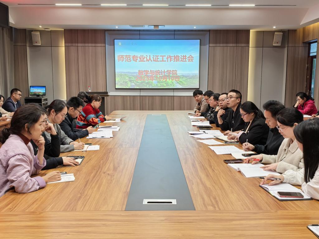 10月10日下午,数学与统计学院在社科楼109会议室召开师范专业认证工作推进会。数学与统计学院院长俞迎达、党总支书记郭二军、副院长张聪等班子成员、无授课任务的教师全员参会,会议由党总支书记郭二军主持。
